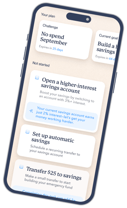 Start with a personalized Financial Health Score that gives you a full picture of where you stand across saving, spending, debt, investing, and more.